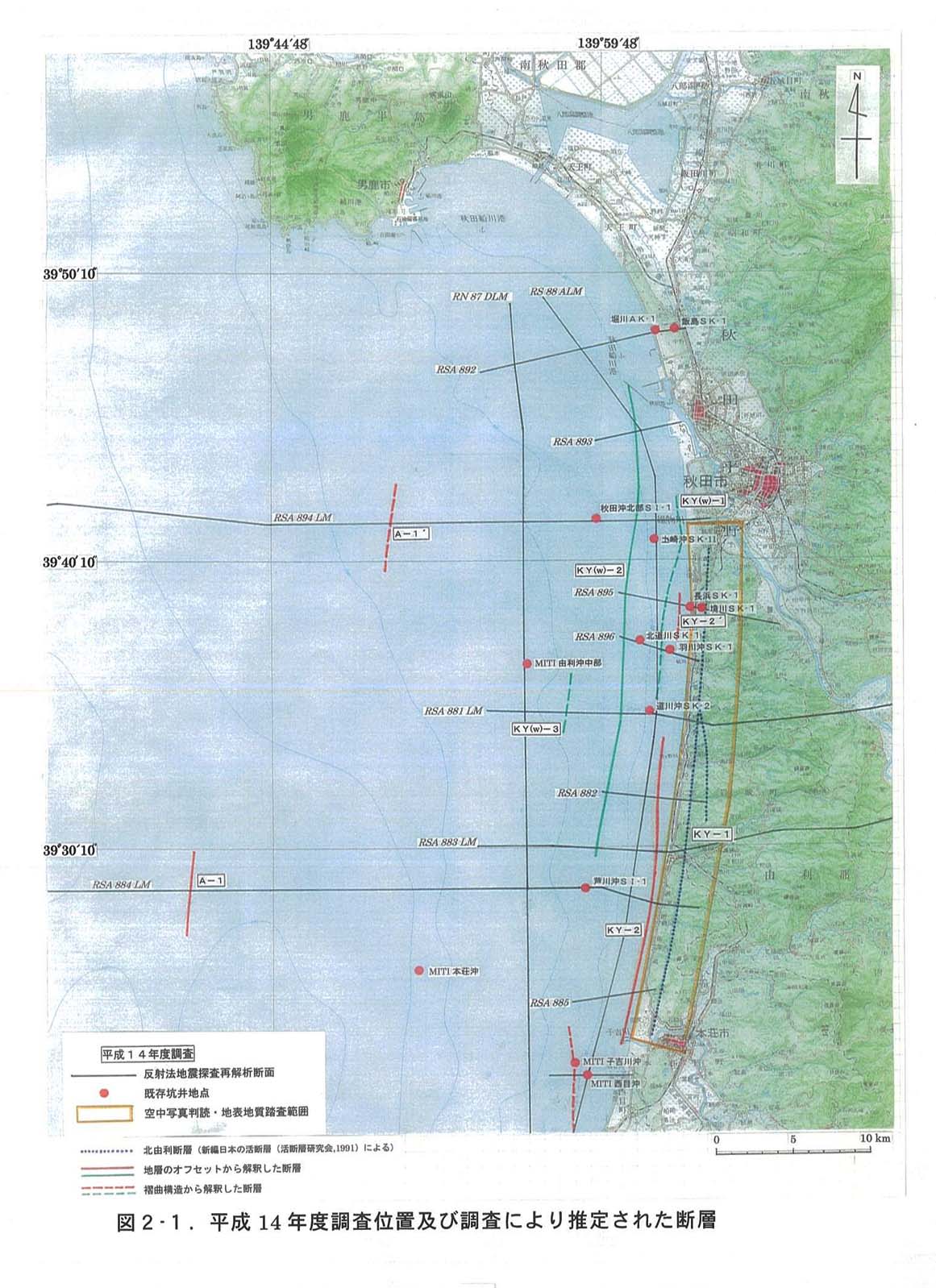 図2−1.平成14年度調査位置及び調査により推定された断層