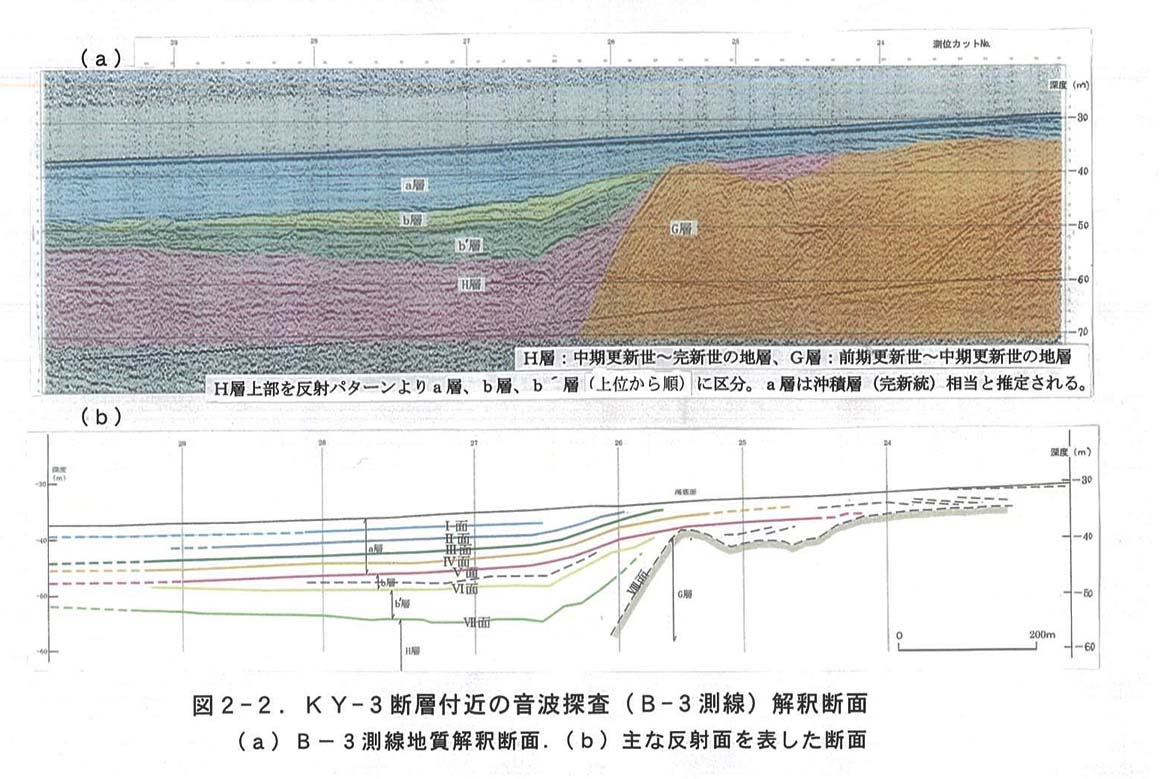 図2−2.KY−3断層付近の音波探査(B−3測線)解釈断面