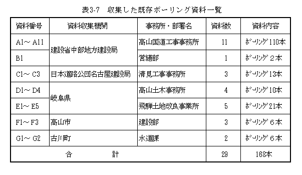 表3−7 収集した既存ボーリング資料一覧