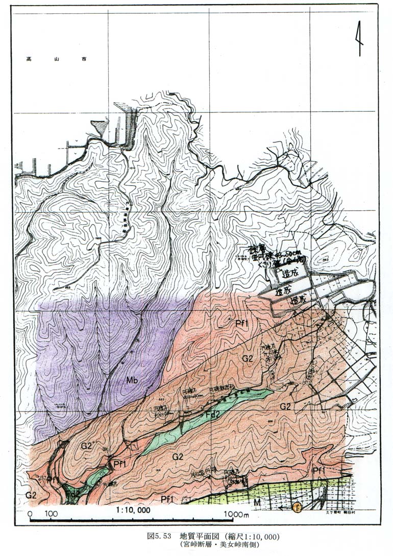 図5−53 地質平面図(縮尺1:10,000)(宮峠断層・美女峠南側)