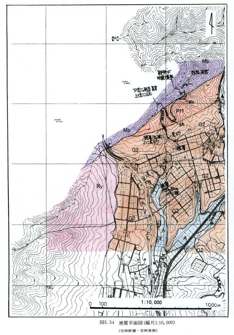 図5−54 地質平面図(縮尺1:10,000)(宮峠断層・宮峠東側)