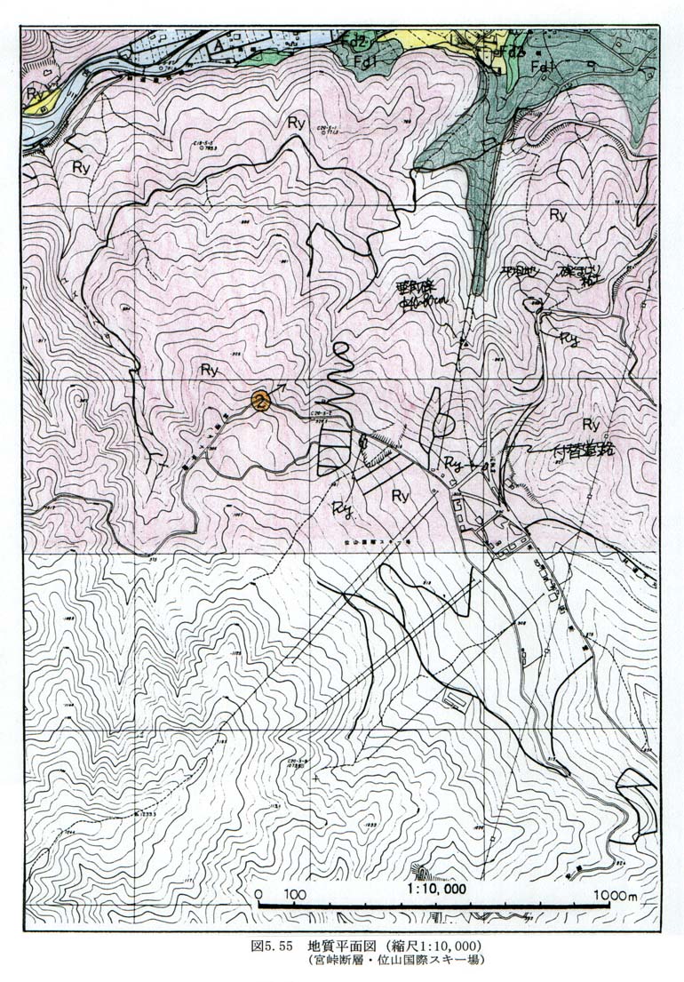 図5−55 地質平面図(縮尺1:10,000)(宮峠断層・位山国際スキー場)