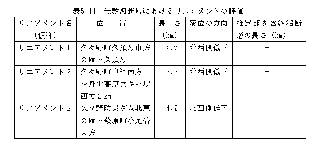 表5−11 無数河断層におけるリニアメントの評価