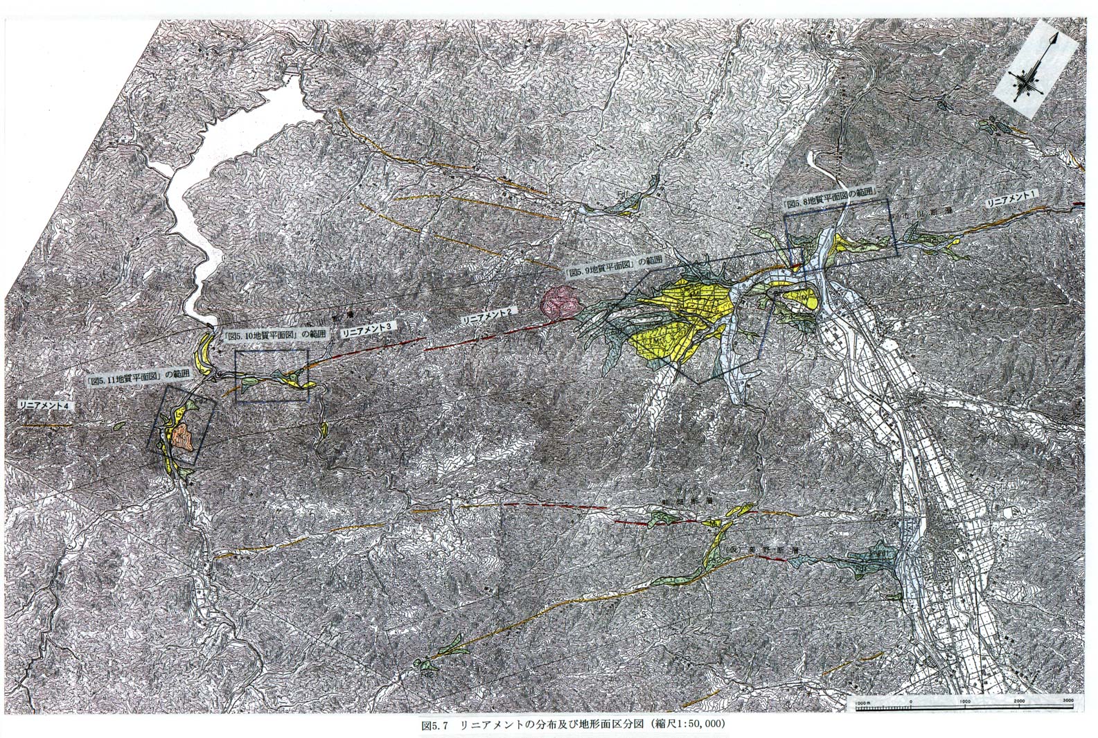 図5−7 リニアメントの分布と地形面区分図(縮尺1:50,000)