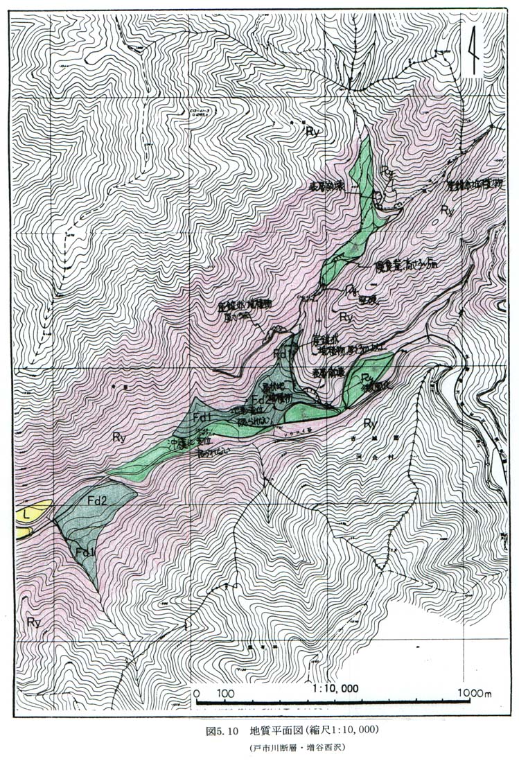 図5−10 地質平面図(縮尺1:10,000)(戸市川断層・増谷西沢)