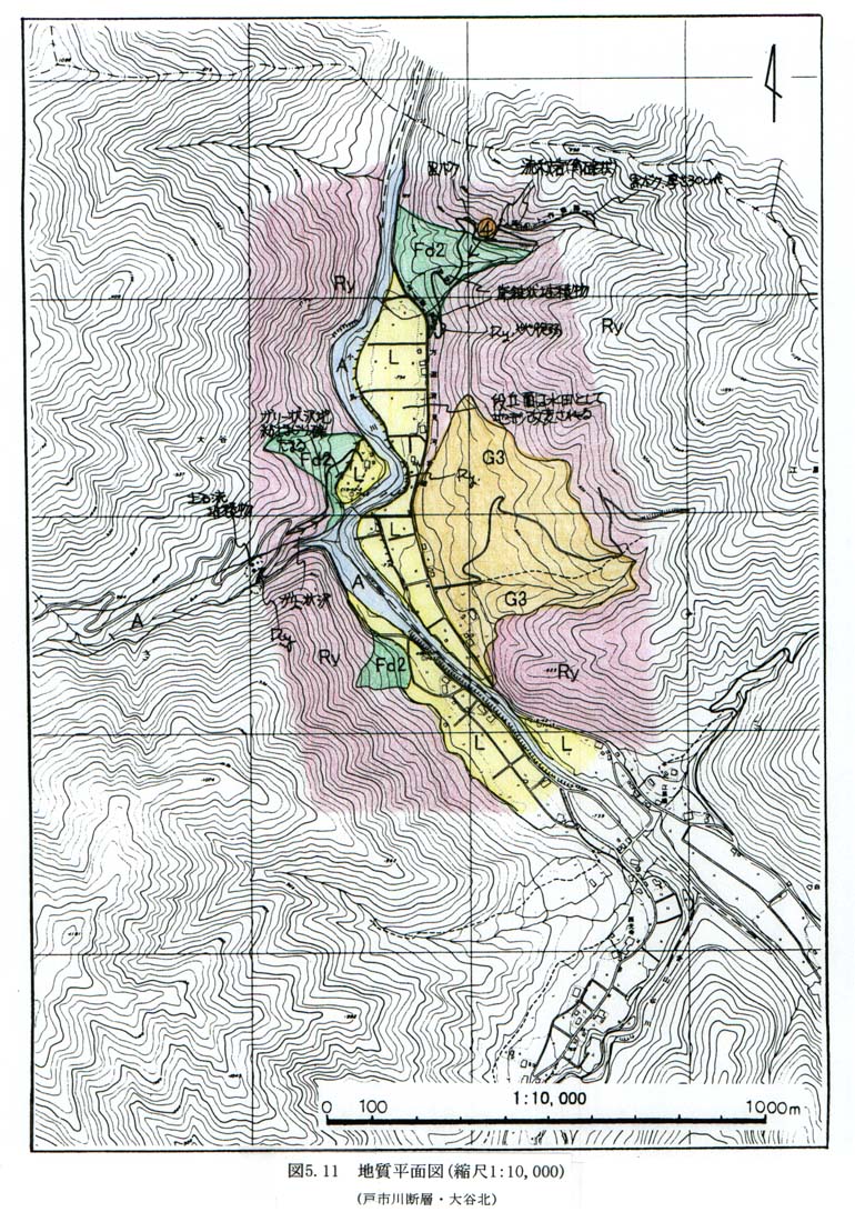 図5−11 地質平面図(縮尺1:10,000)(戸市川断層・大谷北)