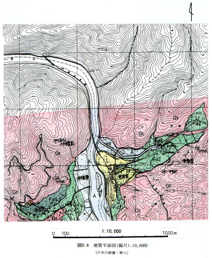 図5−8 地質平面図(縮尺1:10,000)(戸市川断層・野口)