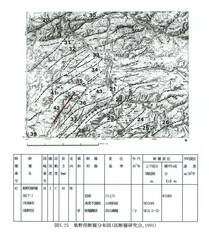 図5−25 巣野俣断層分布図(活断層研究会,1991)