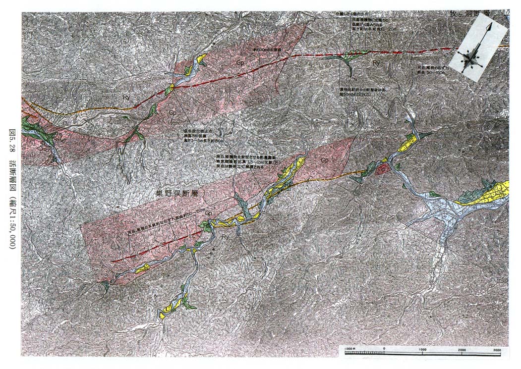 以上の結果,巣野俣断層の活断層として評価される区間は,約2.5qと推定される(図5−28参照)。