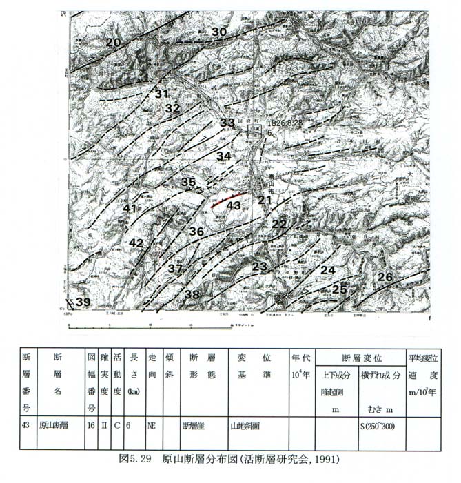 図5−29 原山断層分布図(活断層研究会,1991)