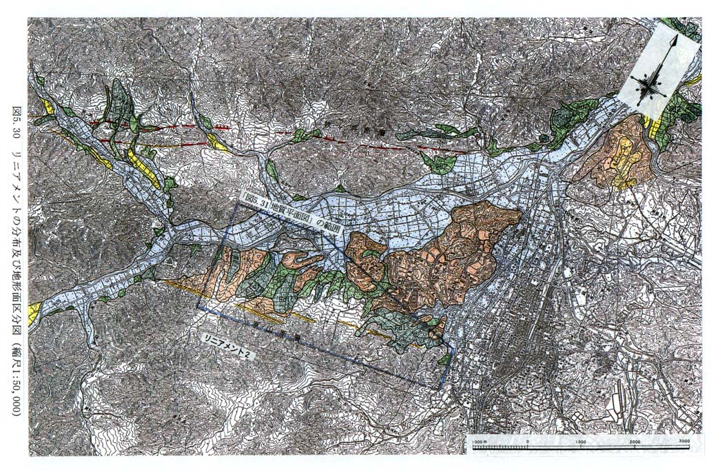 図5−30 リニアメント分布と地形面区分図(縮尺1:50,000)