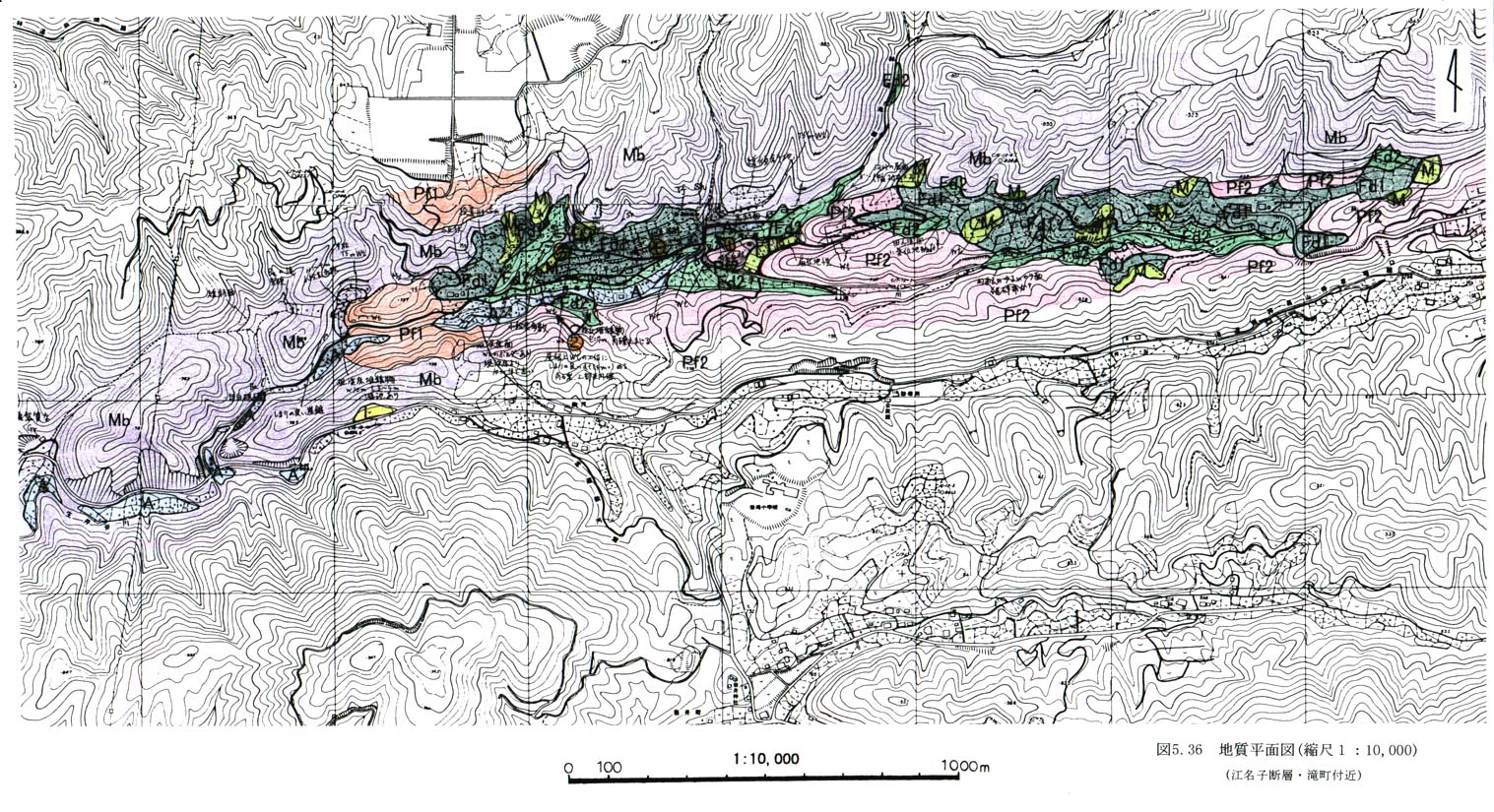 地質平面図(縮尺1:10,000)(江名子断層・滝町付近)