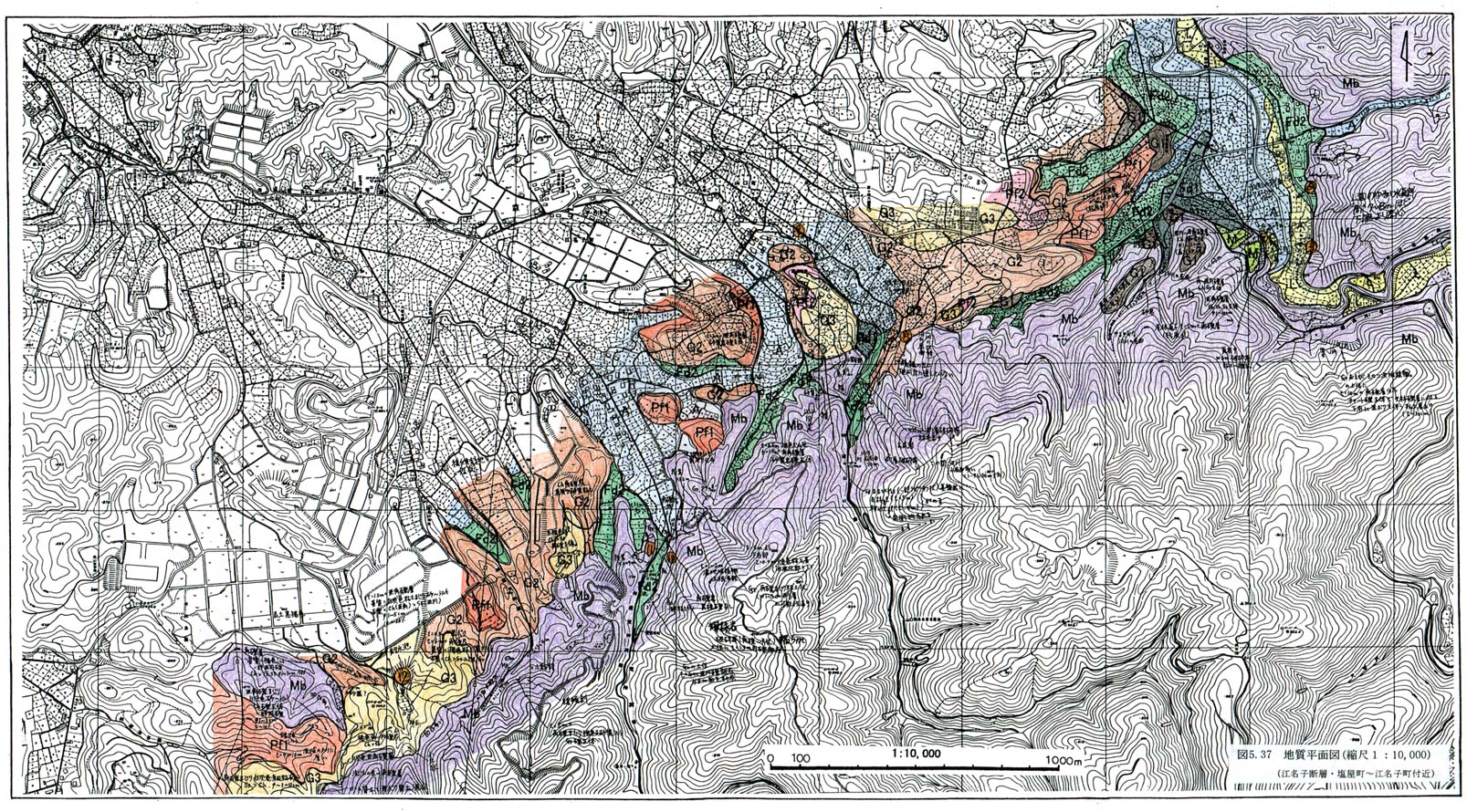 地質平面図(縮尺1:10,000)(江名子断層・塩屋町〜江名子町付近)