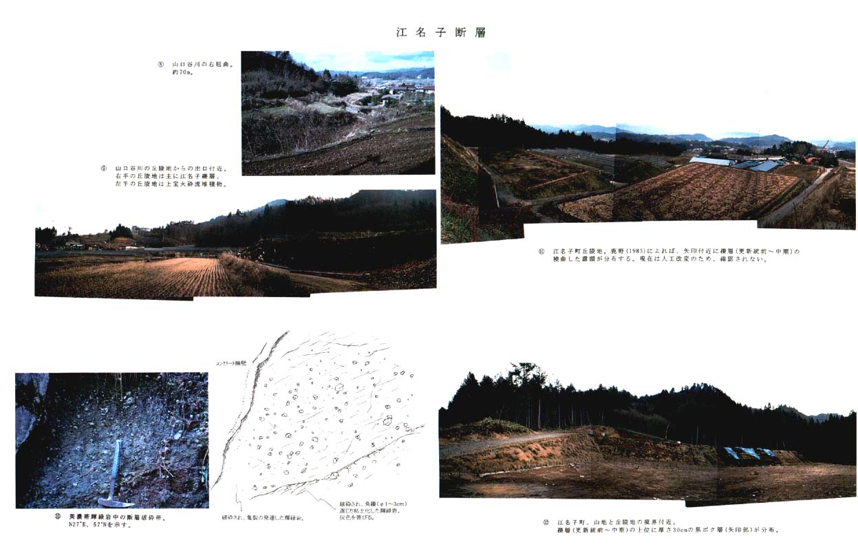 前述のリニアメント沿いで,合計5地点で断層露頭ないし断層破砕帯を確認している。ただいずれも基盤岩中のものであり,前期ないし中期更新統以後の地層に対して変位を与えている可能性のある露頭は見い出せなかった。