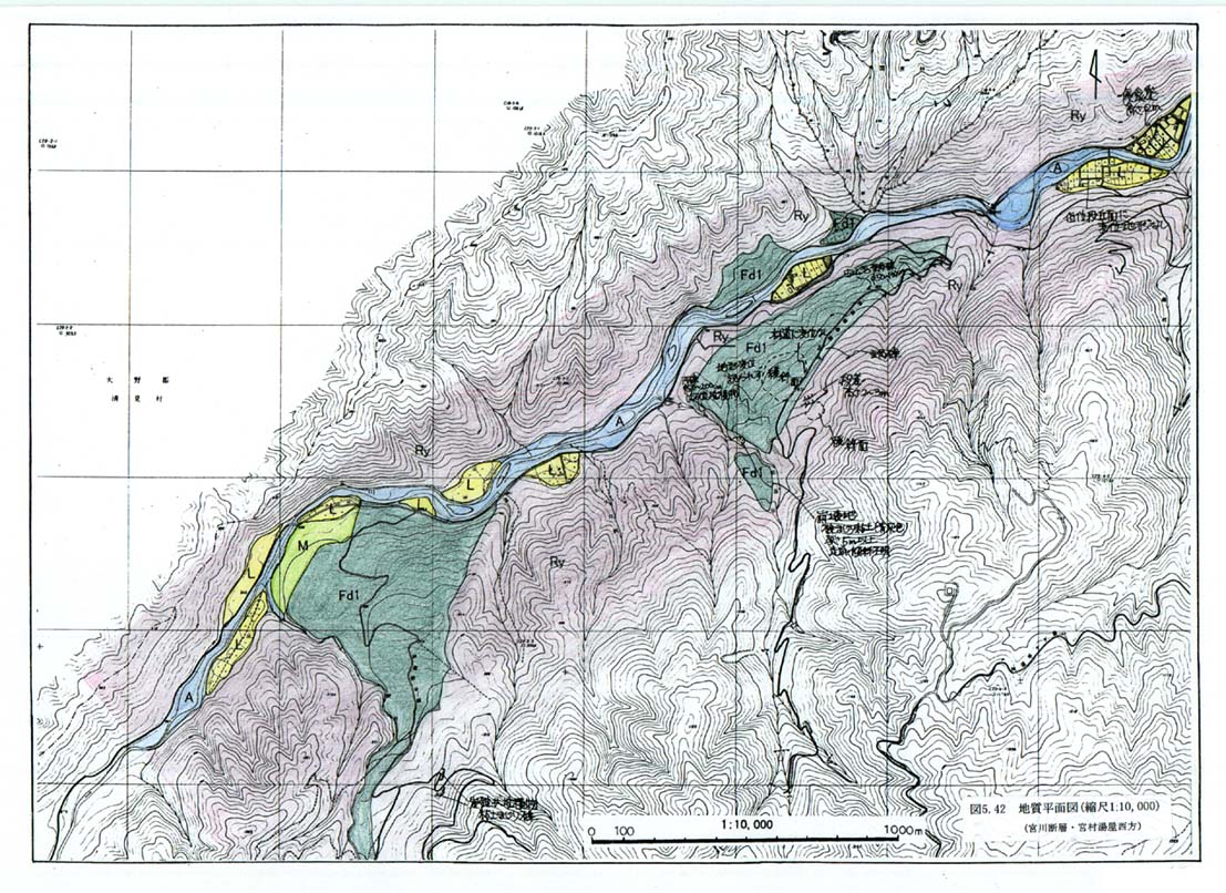 図5−42 地質平面図(縮尺1:10,000)(宮川断層・宮村湯屋西方)