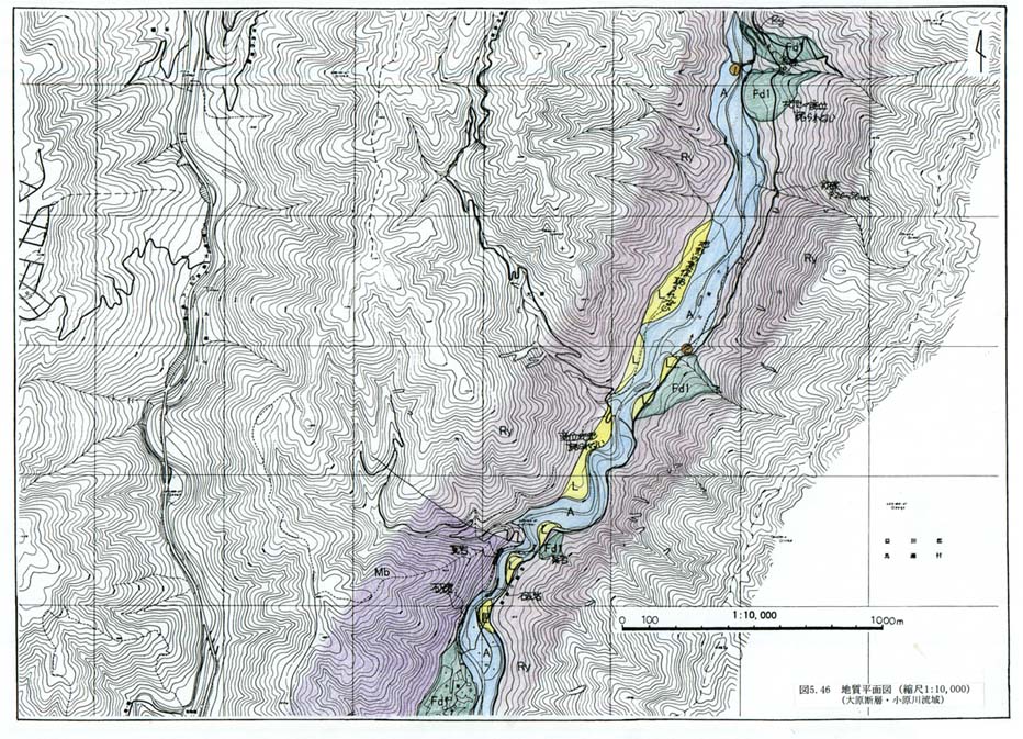 図5−46 地質平面図(縮尺1:10,000)(大原断層・小原)