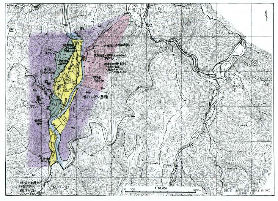 図5−47 地質平面図(縮尺1:10,000)大原断層・大原)