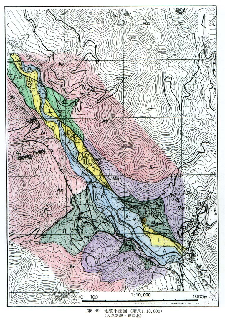 図5−49 地質平面図(縮尺1:10,000)(大原断層・野口北)