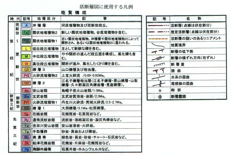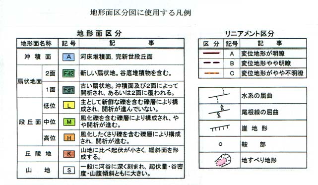 本文に示す地形面区分図と活断層図の凡例は,次ページに示すとおりである。