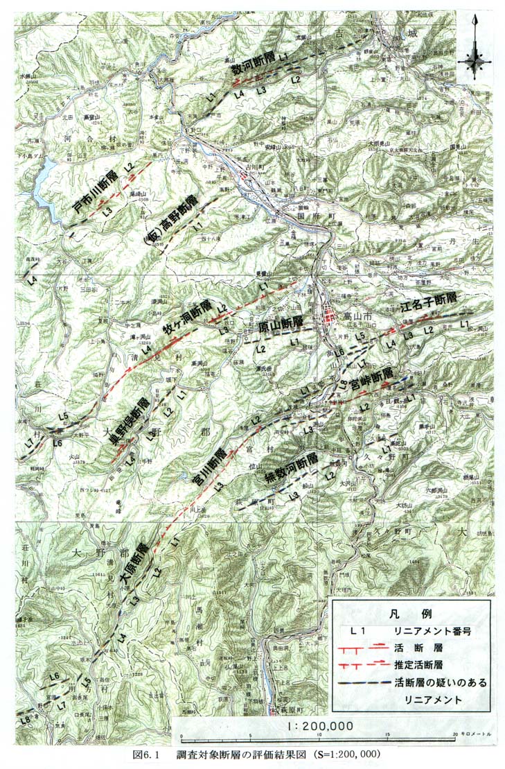 図6−1 活断層と判定された断層の分布図 (縮尺1:200,000)