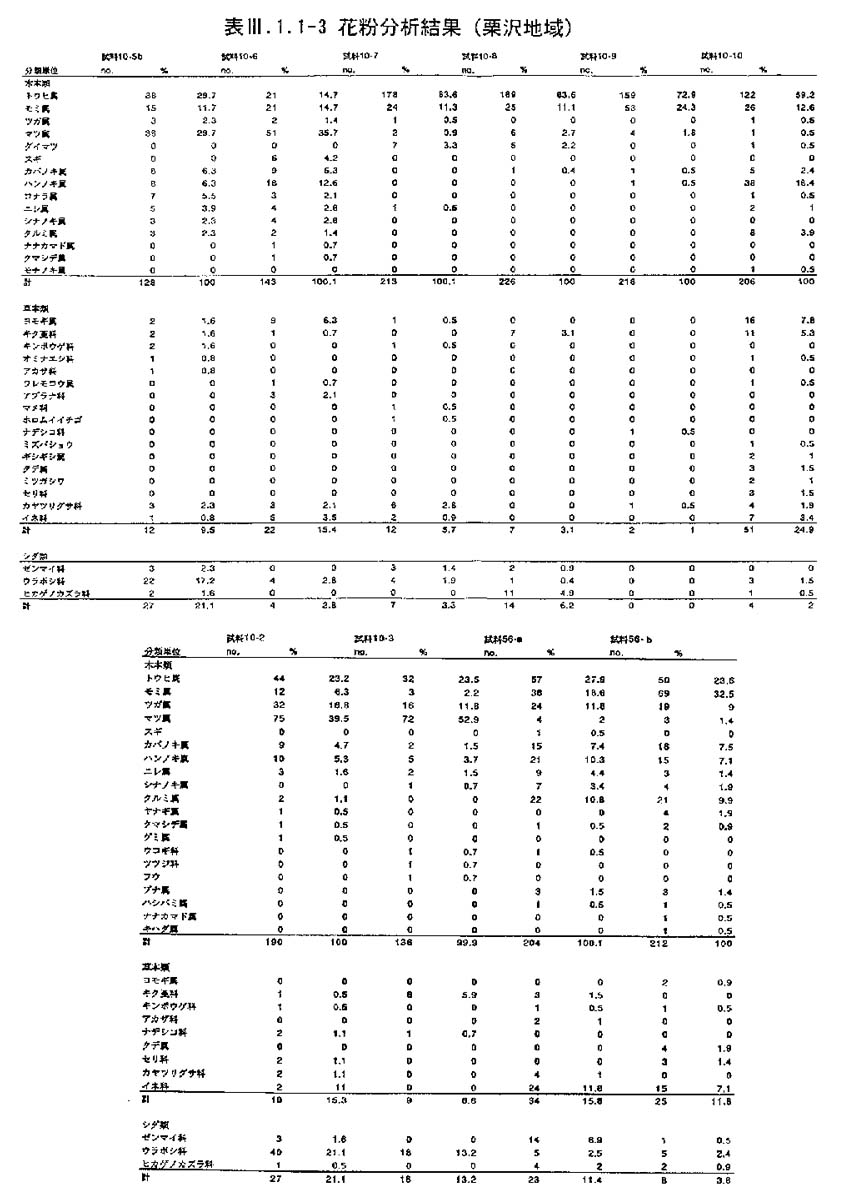 T3が露頭で連続的に観察できるのはLoc.10(図3−1−1−3)である.ここでは下位の有機質シルト層(T3m)が斜交葉理の発達する砂礫層(T3s)に覆われる.T3s層には巣穴状の生痕が認められ,海成の砂礫層とみられる.花粉分析によれば,下位のT3mから上位のT3sに向かってトウヒ属が低率化し,冷温帯要素が多様化しているという特徴が認められ,寒冷期から温暖期への温暖化傾向が認められる(図3−1−1−5;表3−1−1−3).また,T3m層中の泥炭層の木片(Kr−10c:図3−1−1−3のNo.10−10と同位置)の14C(AMS)年代は>47150y.B.P.を示す.なお,Loc.10の西側には多数の地盤ボーリング資料がある.それによれば,T3m層は山側の下位に厚く,T3s層は低地側に極めて厚くなっており(図3−1−1−8−1、図3−1−1−8−2),海進期のバリア−ラグーンシステムを連想させる.一方,明らかに海成のT3s層の最高分布高度は標高30m前後であり,これより高い部分では河川成の礫層がT3mや第三系を直接覆うようになる(Loc.19;Loc.17;Loc.50).すなわち,t3面は幌向川ぞいから山側の河成面と低地側の海成面の複合した地形面と考えられる.