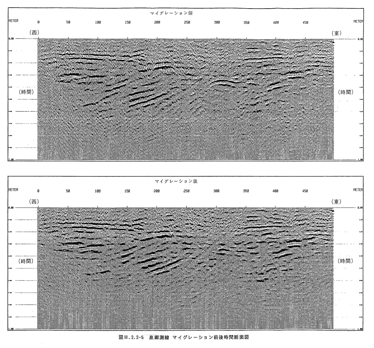 図3−2−2−5にマイグレーション前後の時間断面図を示す.縦軸は時間(秒)である.