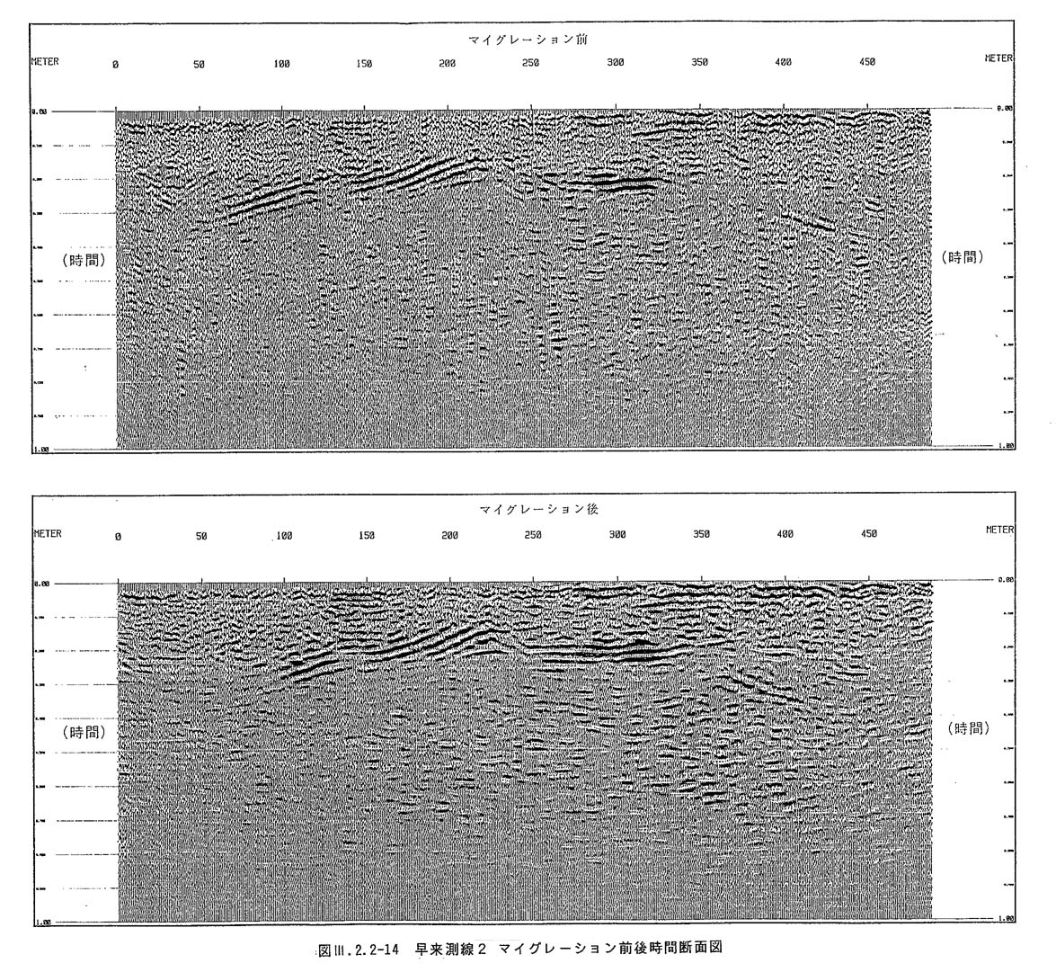 図3−2−2−14にマイグレーション前後の時間断面図を示す.縦軸は時間表示である.