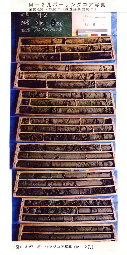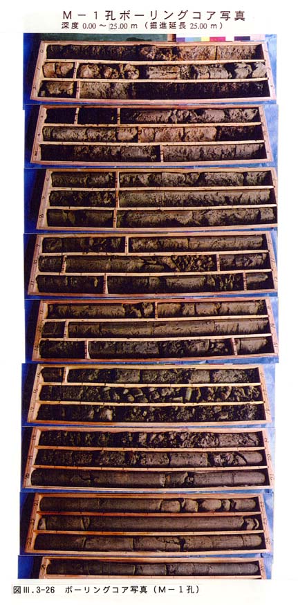 @M−1孔(孔口標高:31.17m,掘削深度:25.00m,図3−3−19、図3−3−23、図3−3−26)