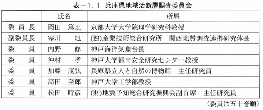 に示す委員より構成される兵庫県地域活断層調査委員会を設置した。同委員会では,調査計画の立案,調査の進め方,調査結果の評価などについて専門的な検討が行われ,調査は同委員会の指示に従って遂行された。