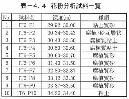 表4−4花粉分析試料一覧