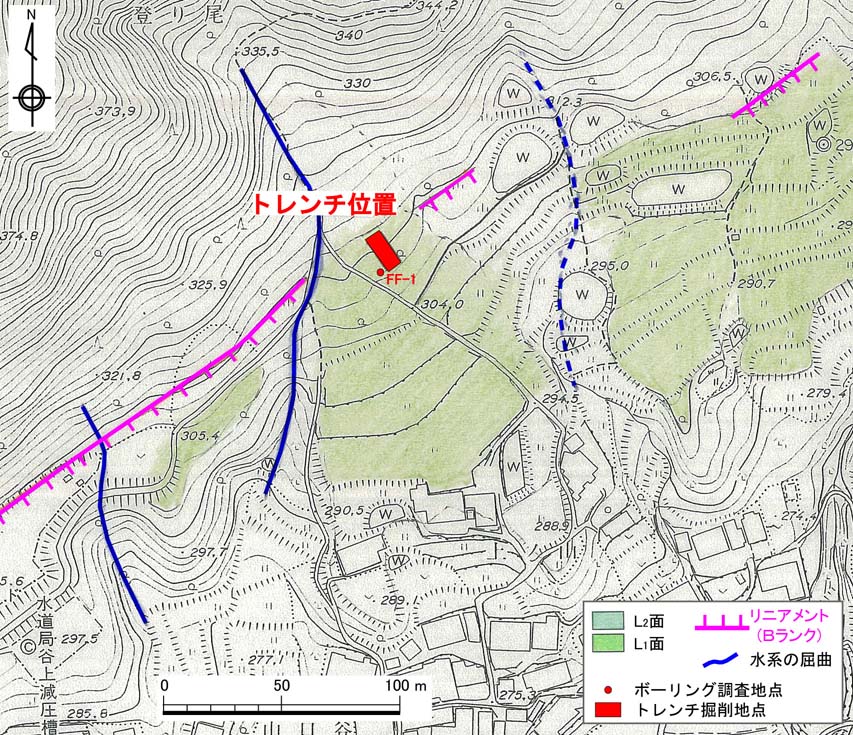 図6−10 古々山断層の調査位置図