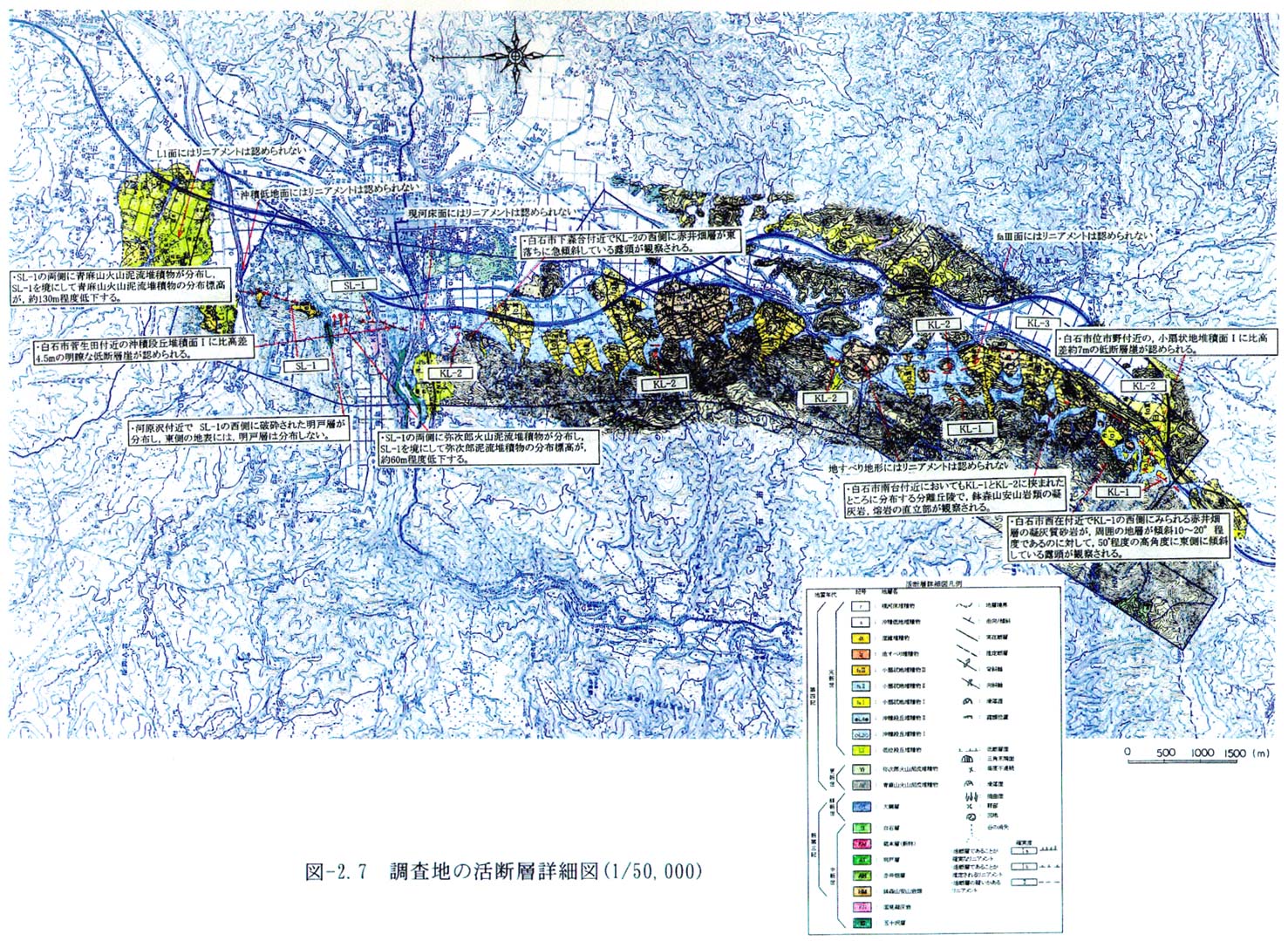 断層露頭が確認されなかったのは,リニアメントがとおる白石盆地西縁に,第四系完新統以降の小扇状地堆積物など,砂礫層が広く分布しているためと考えられる。