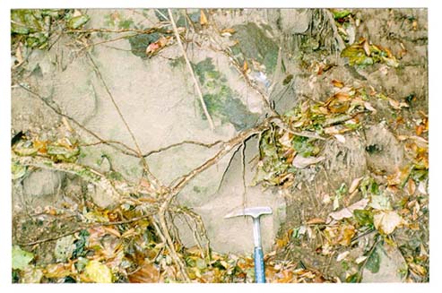 写真10 白石市下森合付近に分布する破砕された凝灰質砂岩(赤井畑層)