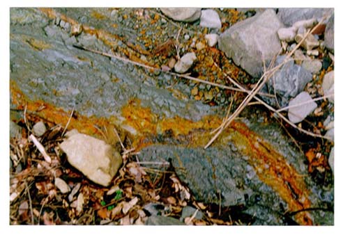 写真9 白石市川原沢付近に分布する破砕された凝灰岩(明戸層)