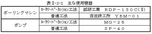 φ108〜φ130oのハンマービットを装着した二重管工法を用い、採取コア径をφ68oとした。また、別孔においては、φ86oの水圧サンプラー(シンウォールチューブ)とコアチューブを用いた。主な使用機器を表2−2−2に示す。