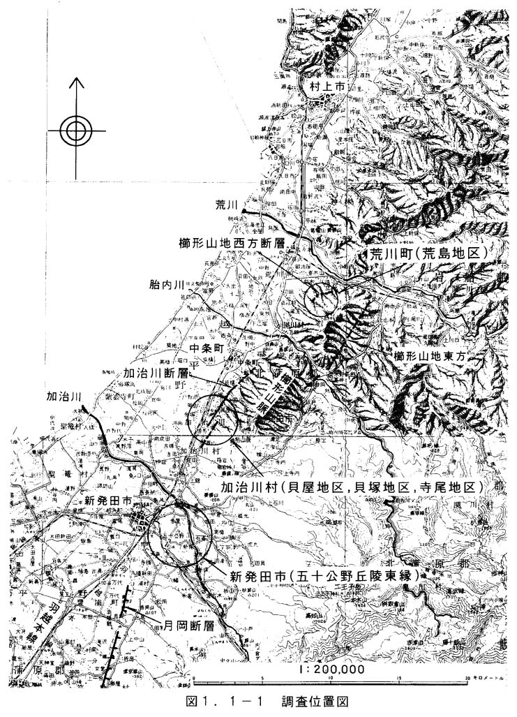 調査地区は荒川町荒島地区,加治川村貝屋地区,加治川村貝塚地区・寺尾地区及び新発田市五十公野丘陵東縁である.