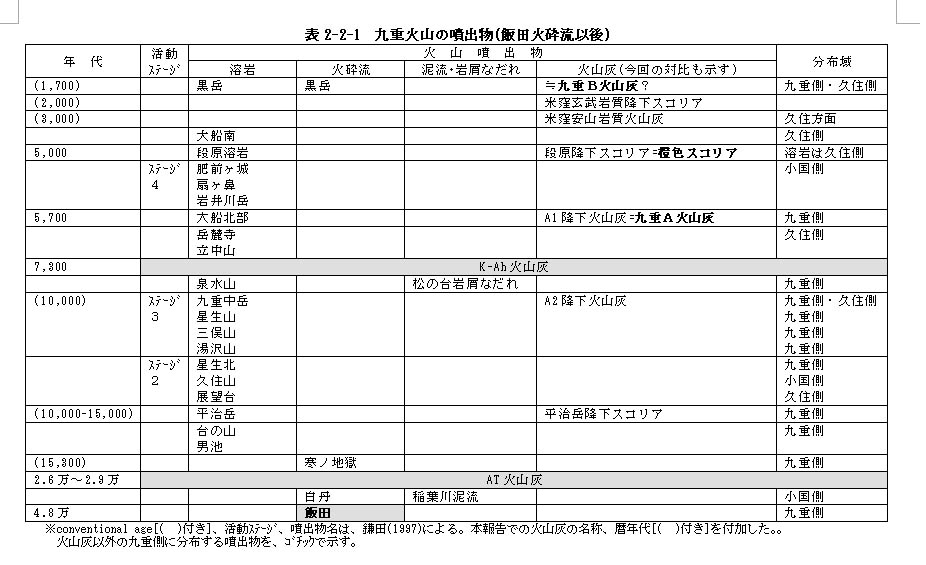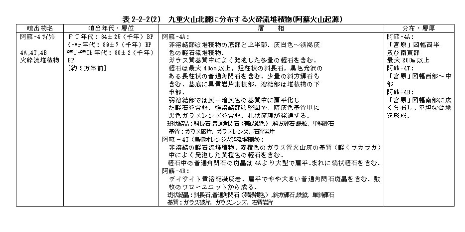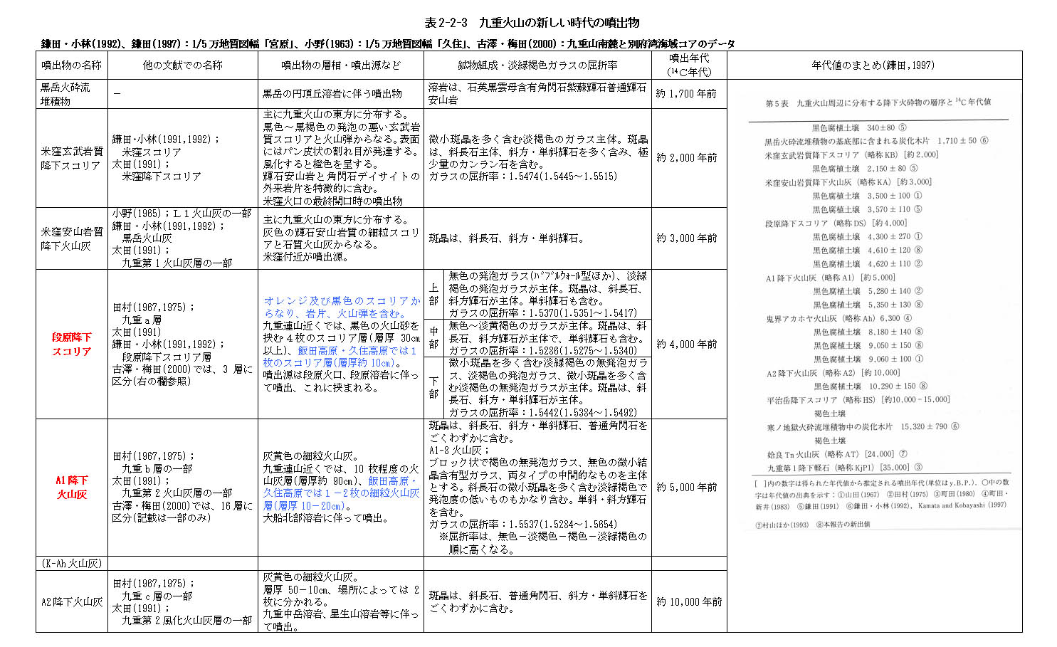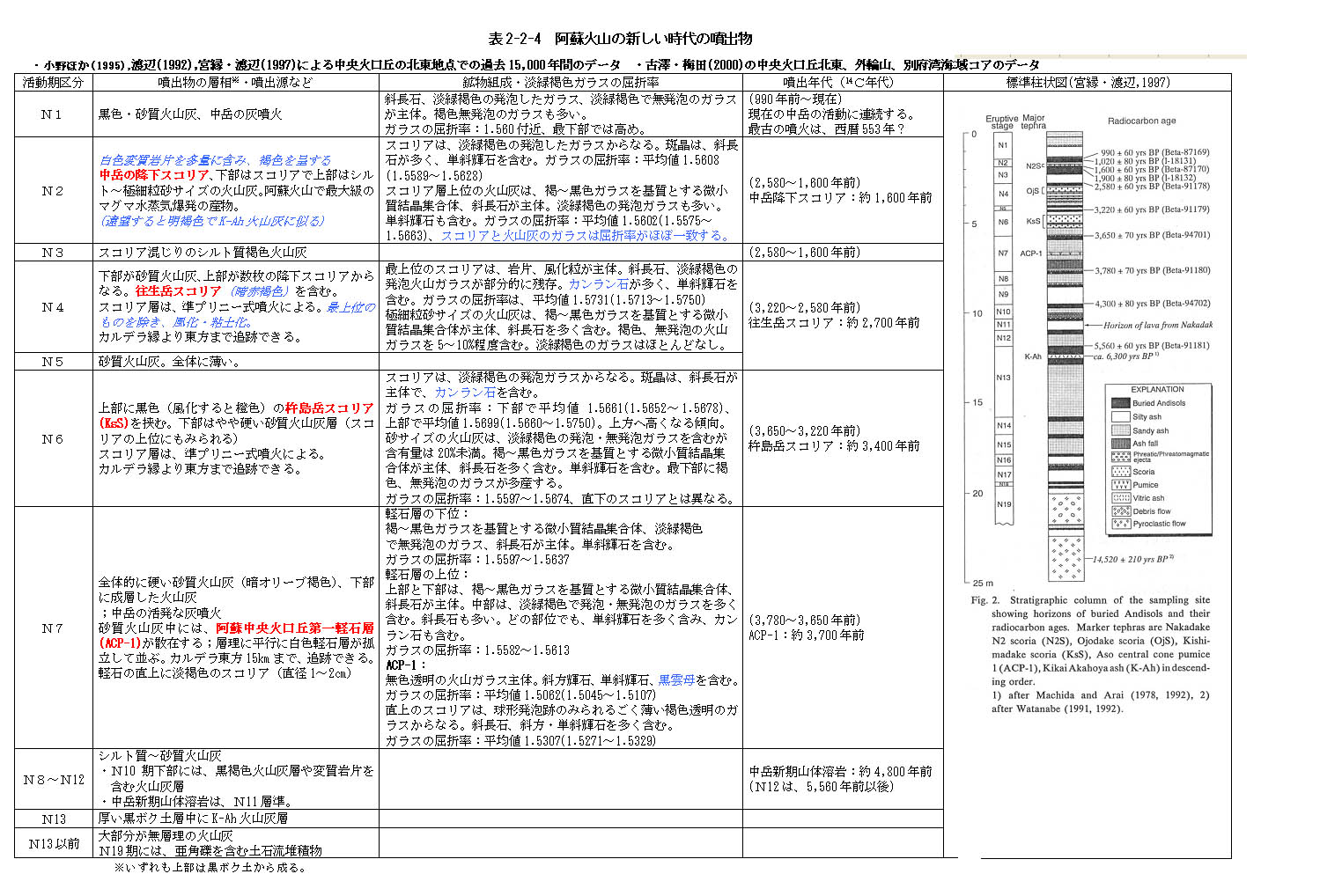 表2−2−4 阿蘇火山の新しい時代の噴出物
