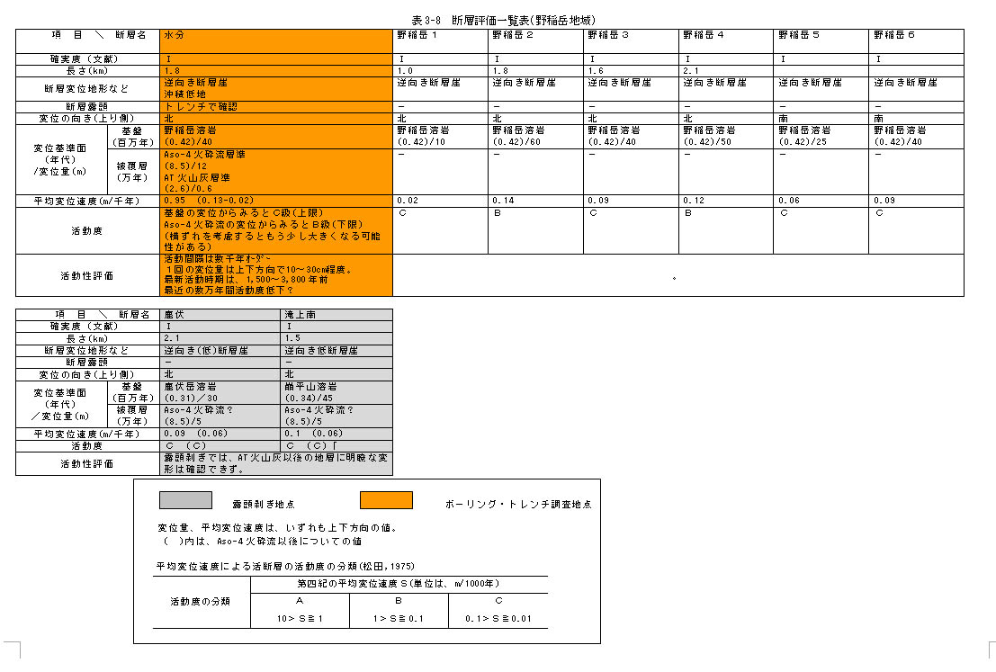 本章で検討した断層の活動性評価を表3−8にまとめた。