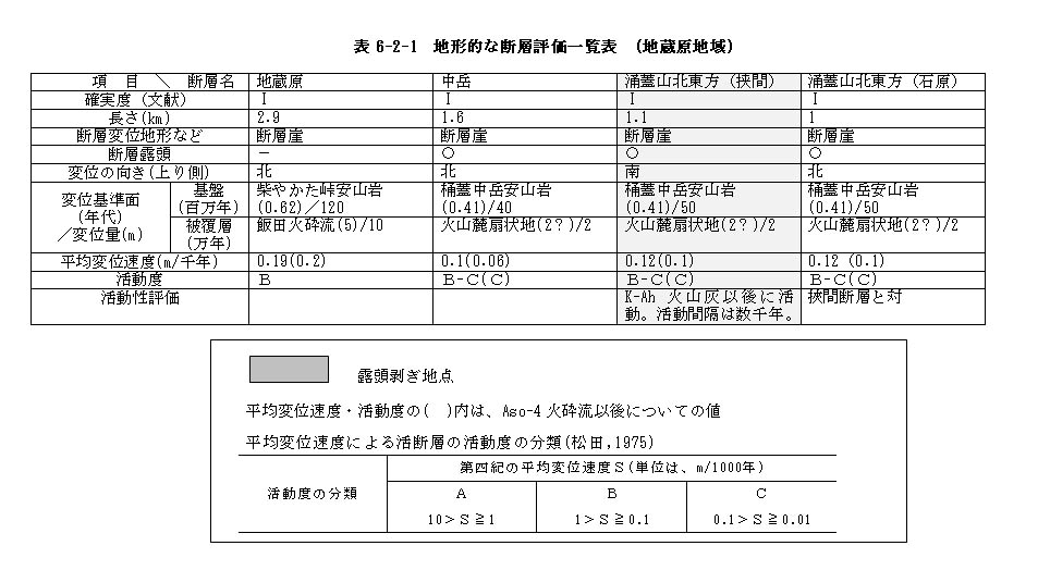 表6−2−1 地形的な断層評価一覧表 (地蔵原地域)