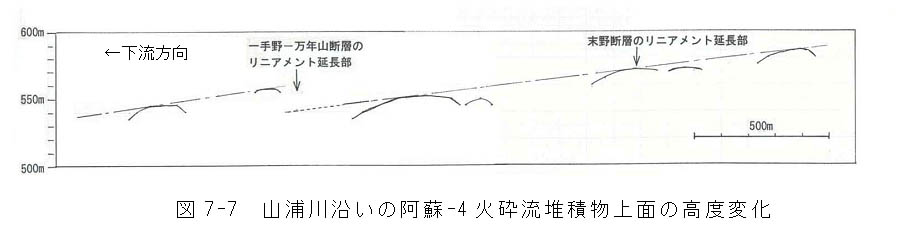 図7−7 山浦川沿いの阿蘇−4火砕流堆積物上面の高度変化