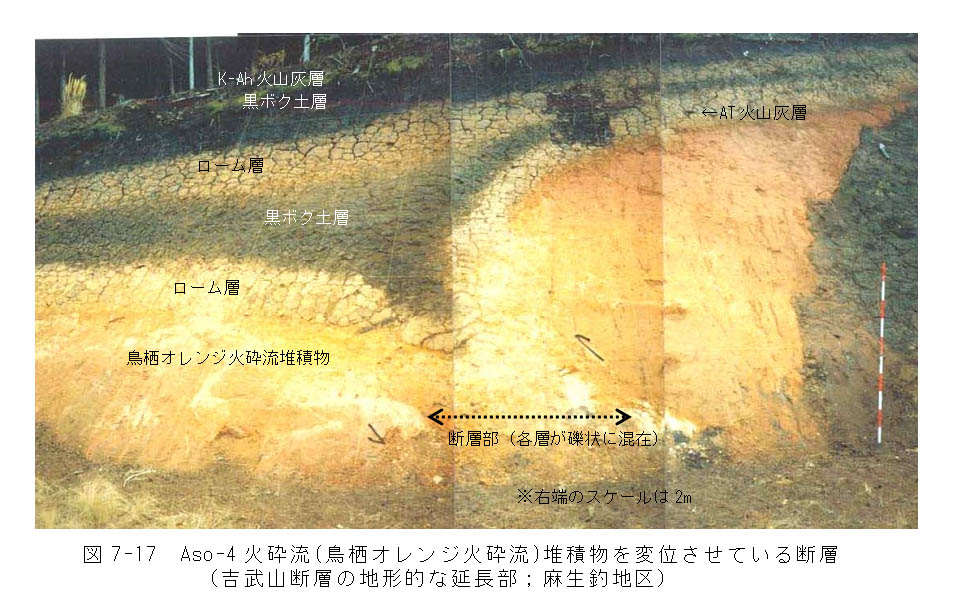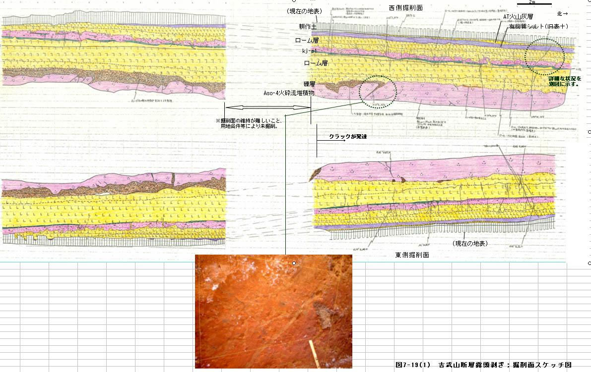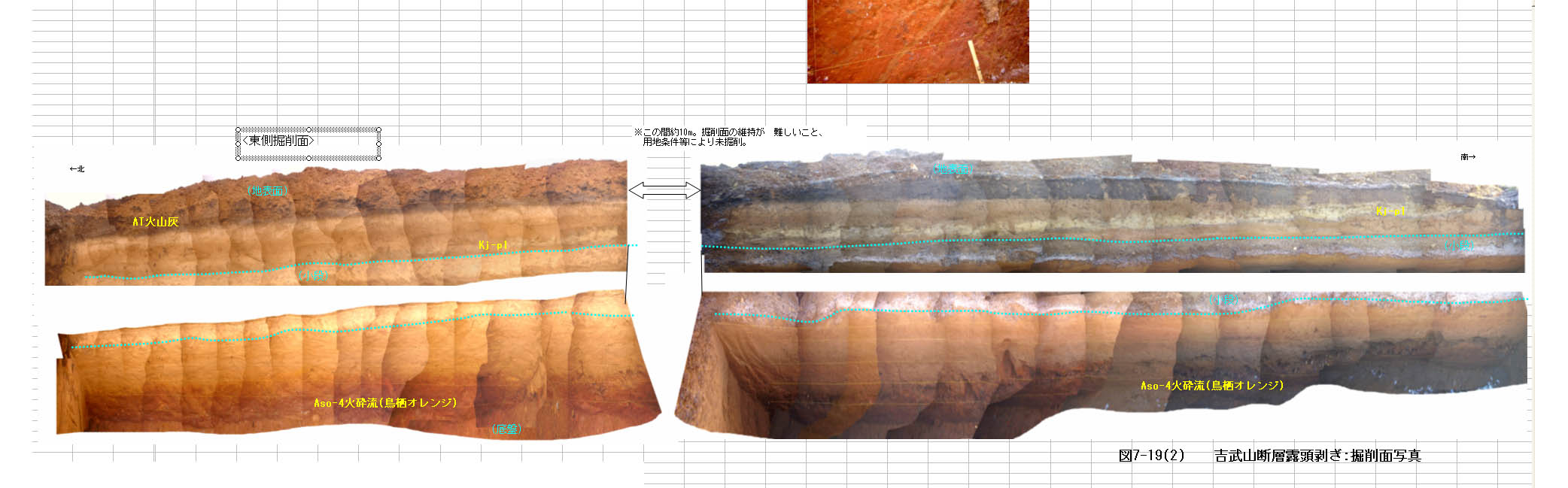 活動性に関する以上のデータは、前述したこの地点の東方の断層露頭で読み取れる活動性に関わるデータとも矛盾しない。しかしながら、Aso−4火砕流の変位量以外のデータは、断層評価に用いるものとしては、十分確定されたものとはいえない。したがって、ここでは、参考データとして扱っておく。