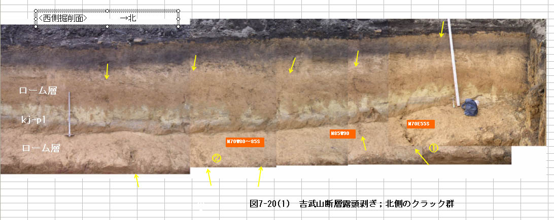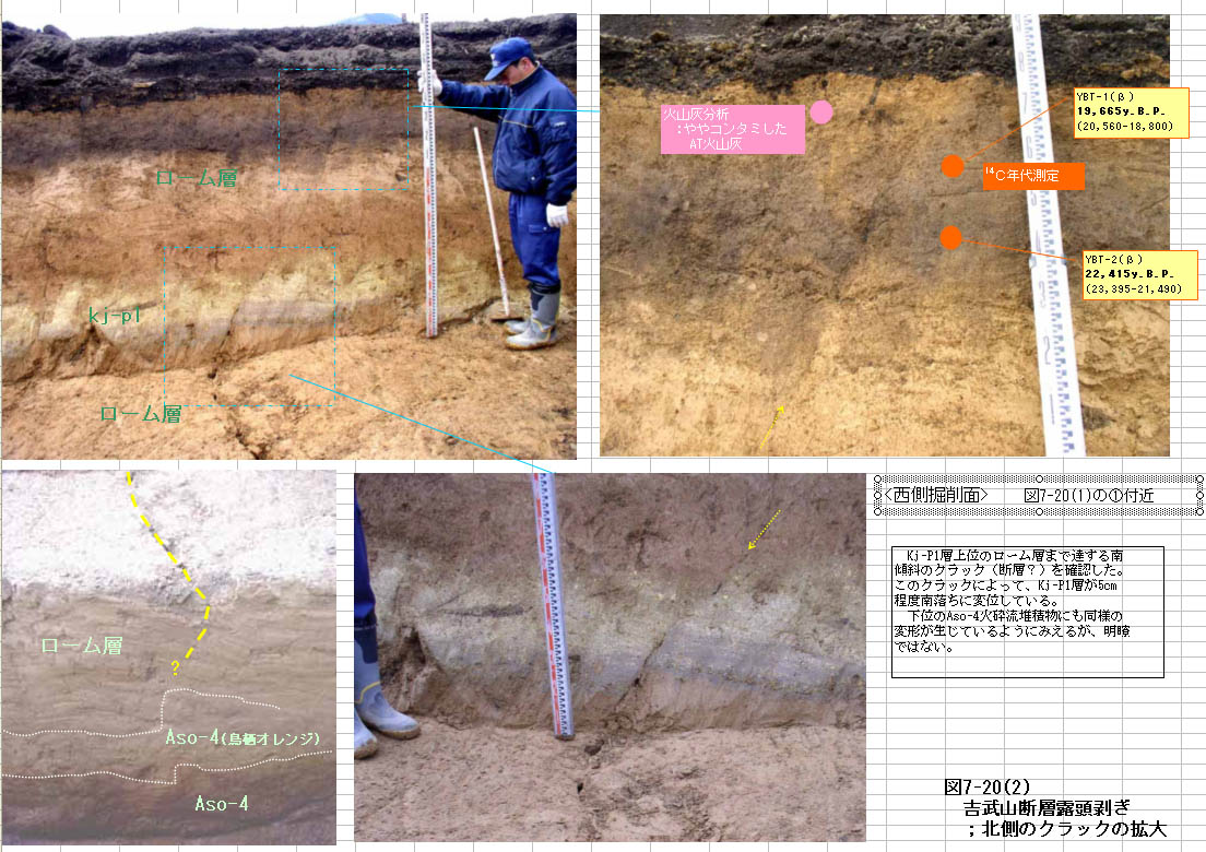 とその下位のローム層中には追跡できるが、さらに下位のAsO−4火砕流堆積物中では不明瞭になる。Aso−4火砕流堆積物中にもクラックは生じているが、これは逆に上位層まで達していない。