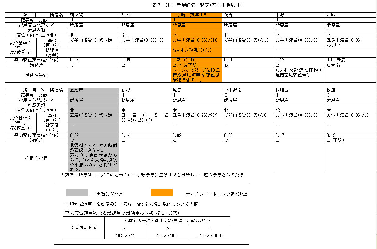 表7−2−1 断層評価一覧表(万年山地域−1)