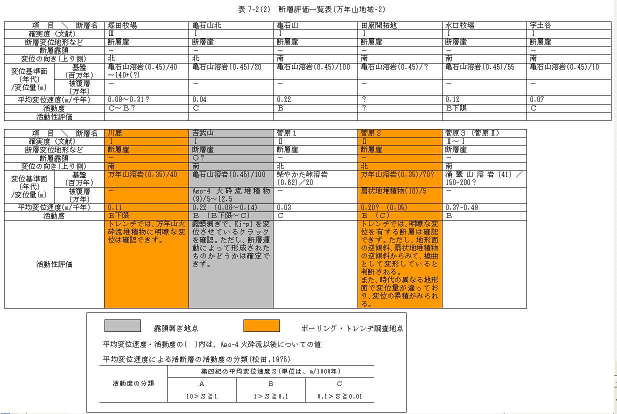 以上の調査結果をもとに、万年山地域の活断層評価を表7−7にとりまとめた。