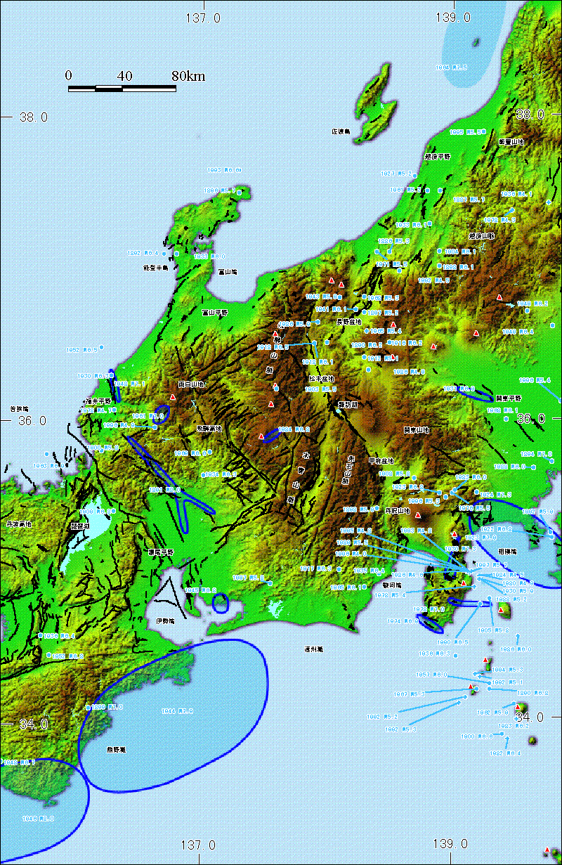 図6−2 中部地方とその周辺の主な被害地震(1885年〜1997年6月)
