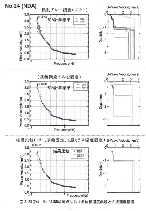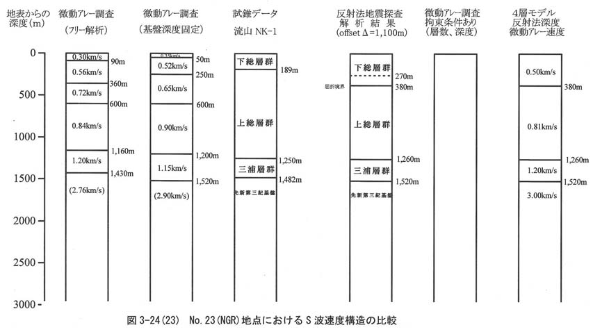 図3−24−1,図3−24−2,図3−24−3,図3−24−4,図3−24−5,図3−24−6,図3−24−7,図3−24−8,図3−24−9,図3−24−10,図3−24−11,図3−24−12,図3−24−13,図3−24−14,図3−24−15,図3−24−16,図3−24−17,図3−24−18,図3−24−19,図3−24−20,図3−24−21,図3−24−22,図3−24−23,図3−24−24,図3−24−25,図3−24−26には全地点でのS波速度構造を比較した結果をそれぞれ各地点ごとに示す。