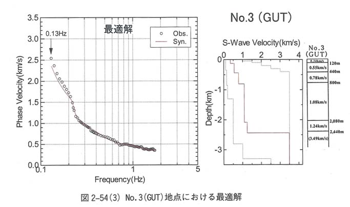 図3−23−3 No.3(GUT)地点における位相速度曲線とS波速度構造