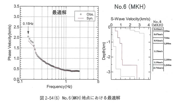 図3−23−6 No.6(MKH)地点における位相速度曲線とS波速度構造