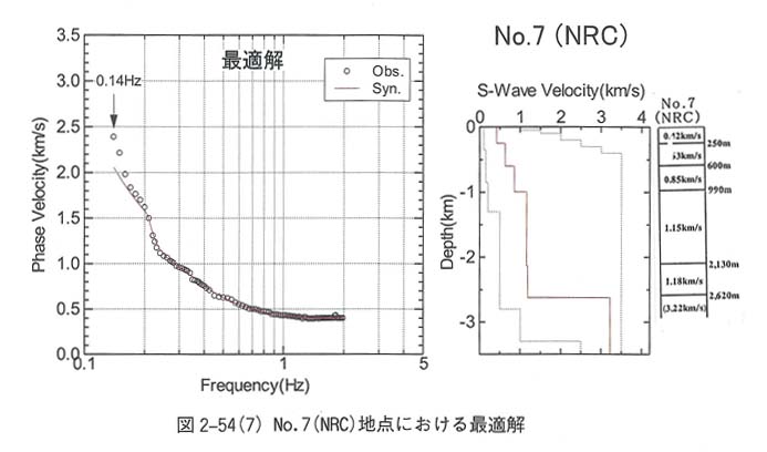図3−23−7 No.7(NRC)地点における位相速度曲線とS波速度構造
