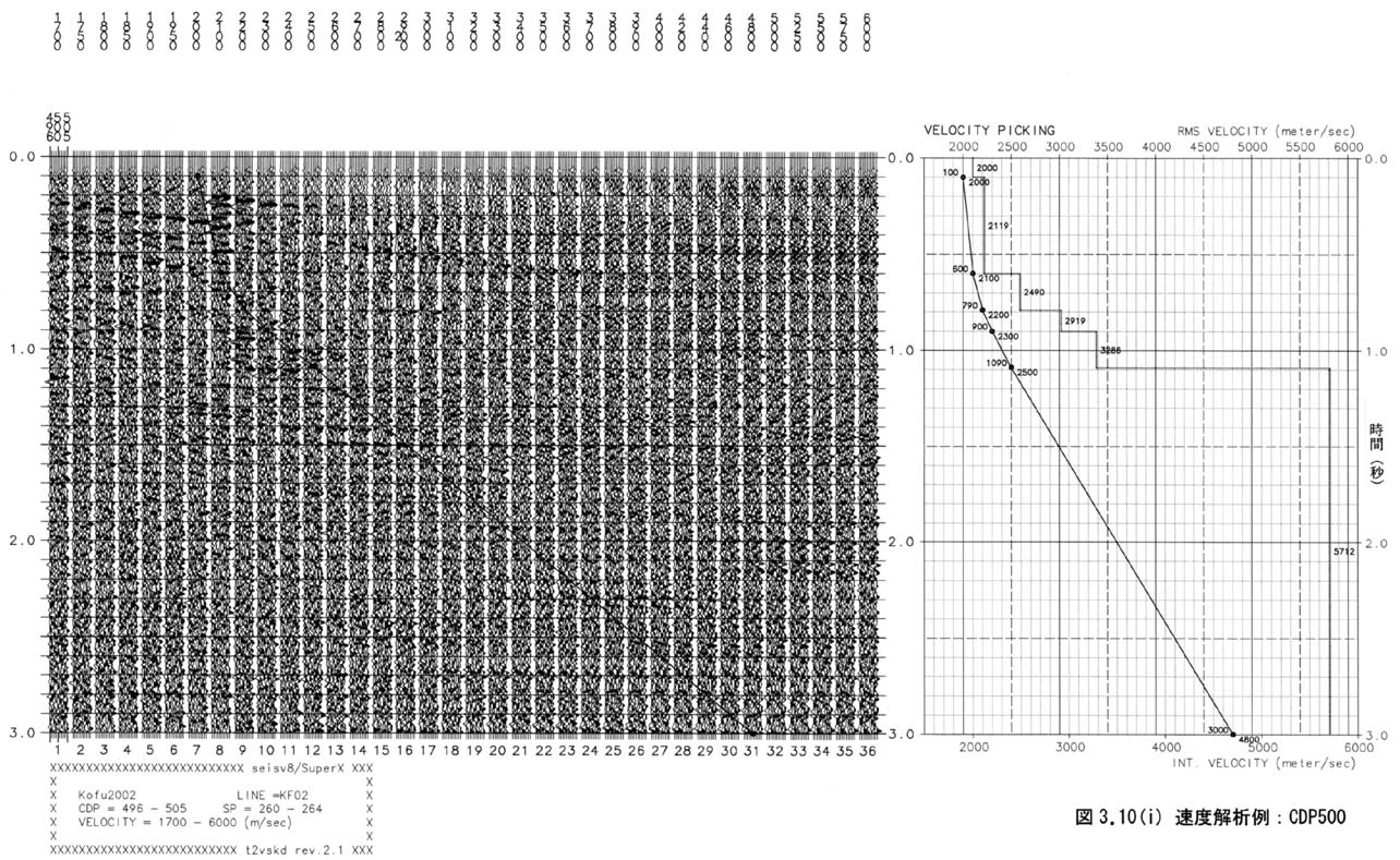 に示す。また資料10に測線全体におけるLong Constant Velocity Stackの速度解析パネルを添付した。